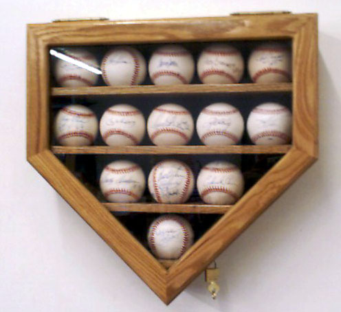 display baseballs in cubes. Your choice of finish: light oak,